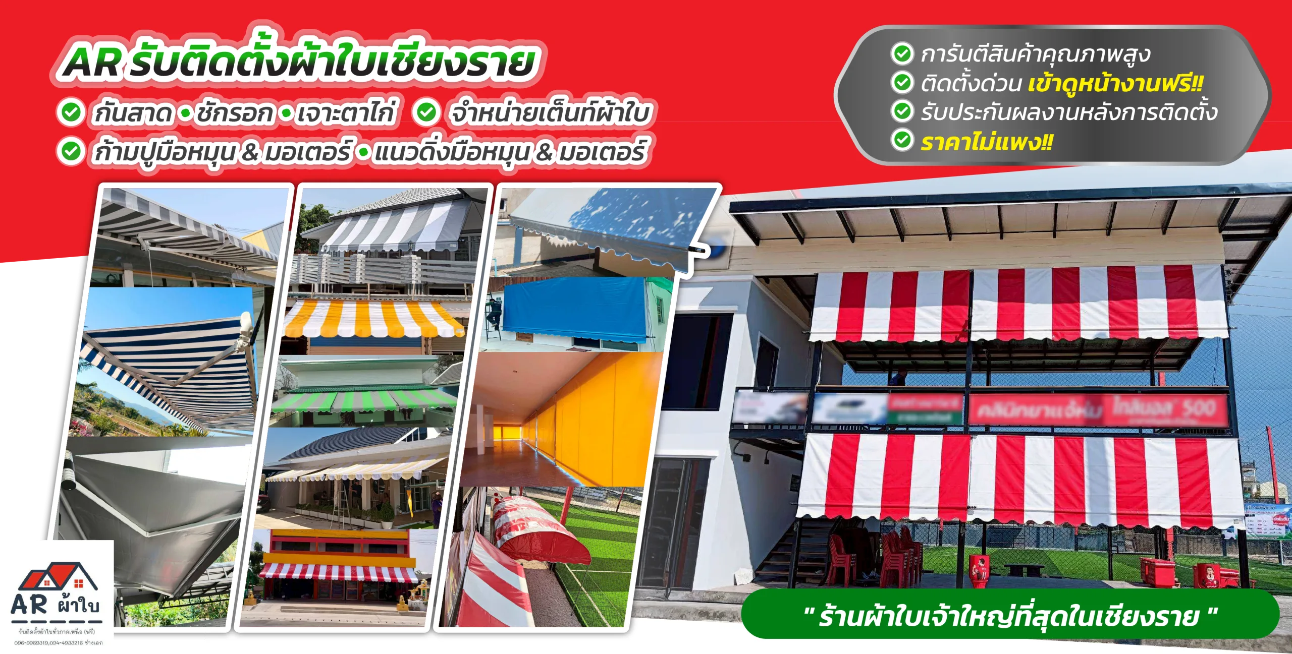 เราคือผู้ให้บริการด้านผ้าใบกันสาดแบบครบวงจร พร้อมจำหน่ายและติดตั้งสินค้าคุณภาพสูง ครอบคลุมหลากหลายประเภท ยินดีดูหน้างาน ประเมินราคาฟรี เชียงราย